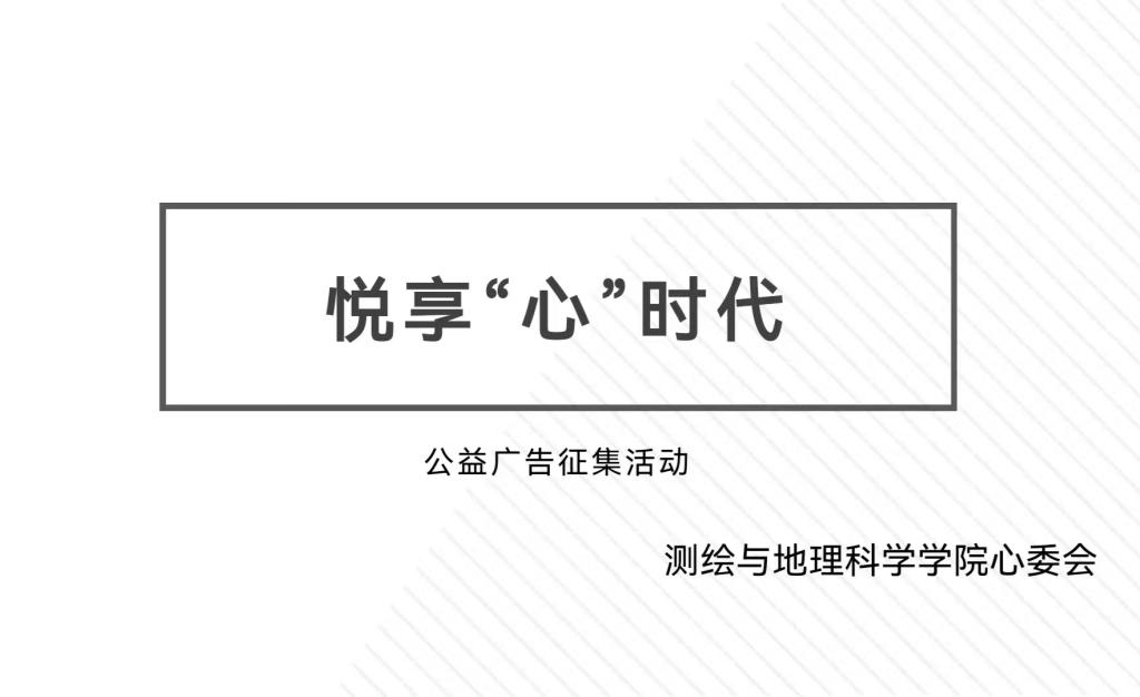 为丰富大学生校园生活,满足学生多元化生活需求,增加学生课余生活的趣味性,测绘学院心委会组织了"悦享‘心’时代"广告征集活动,线下征集每位同学的作品之后,5月21日晚18点,在惠和楼207进行作品分享。