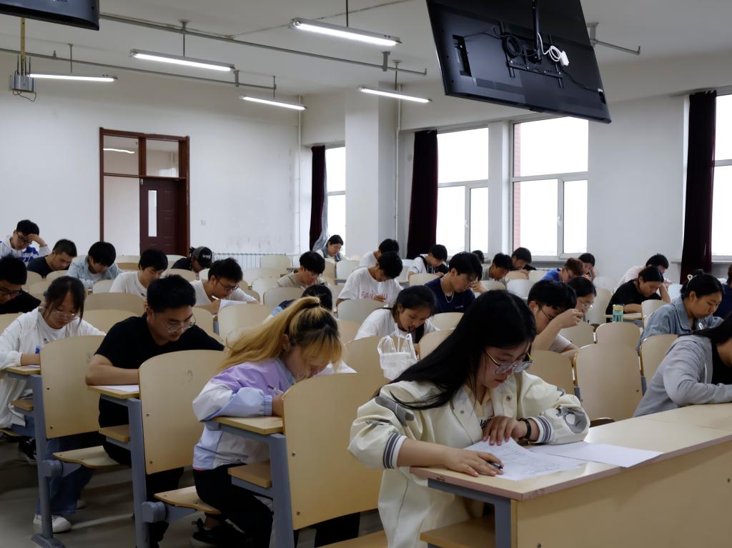 本次考试,程序正规、考纪严谨。考试前由辅导员隋庆伟召开考务会,发放试卷、考试承诺书、学生党员监考证,并对考试规范、职责分工做了详细的说明和安排。考试过程中,毕业生党员宣读并组织全体考生签订了考试承诺书,进一步明确考试纪律,端正考风严肃考纪,教育引导同学们树立诚信考试意识。同时,监考人员安排考生座次、发放试卷、维护考场秩序等,学院辅导员和学生工作部对各考场进行巡考,保障了本次考试的顺利进行。