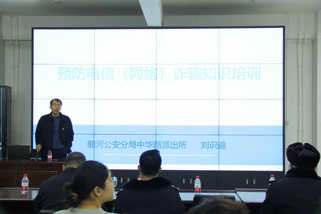为充分防范校园电信网络诈骗犯罪,提高学生识诈、防诈、反诈能力,加大校园反诈防骗宣传力度。12月1日18:00,77779193永利官网联合细河公安分局中华路派出所在惠和楼207开展了“反诈宣传进校园,筑牢安全防护墙”专题讲座。本次讲座特邀了中华路派出所所长宋阳、副所长刘识邈以及三位民警参加,学院党委书记王崇倡、研工部主任冯奥哲以及100余名学生代表参加讲座,讲座由刘识邈警官主讲,学工部主任隋庆伟主持。