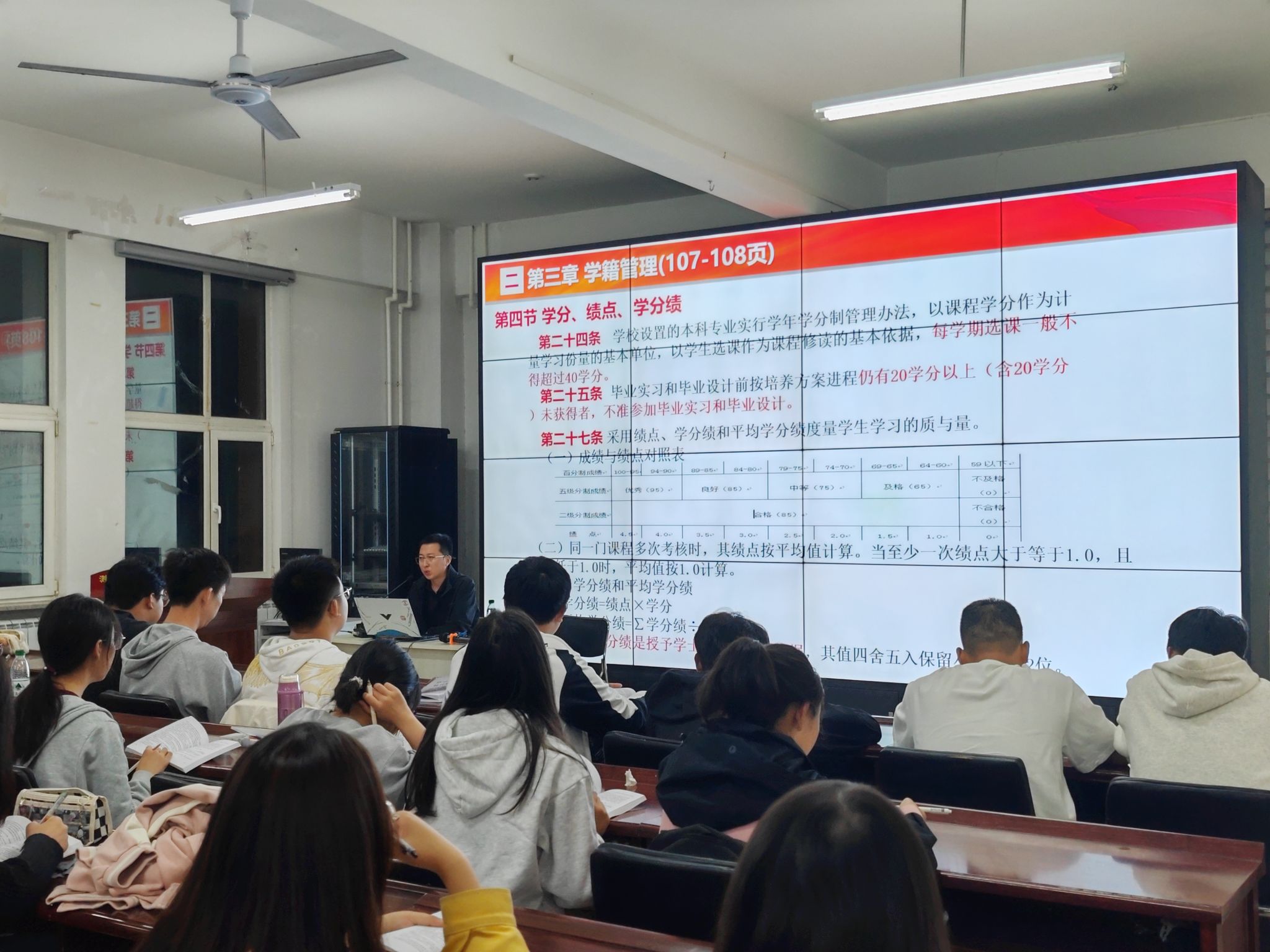 活动中,两位老师分别围绕本科生和研究生《学生手册》中学生管理、学籍管理、住宿管理、违纪处分规定及奖励制度等重点内容进行解读与领学,讲解中列举了大量真实的正反案例对同学们进行鼓励及警醒。要求同学们要认真学习《学习手册》,遵守校规校纪,早日为自己制定合理的学习生活计划,做到德智体美劳全面发展。